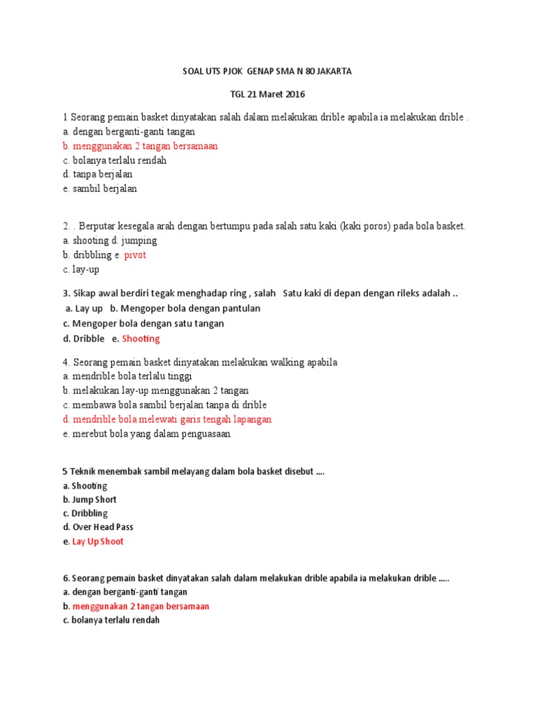 Soal Basket Lengkap Jawaban