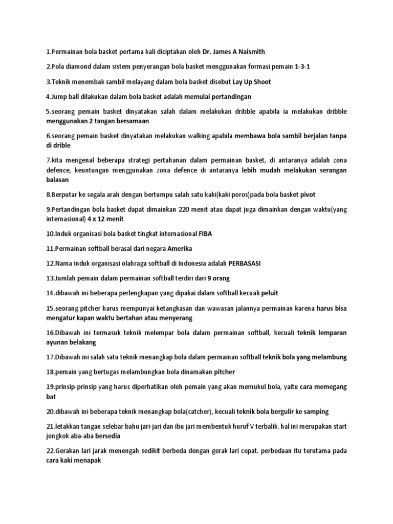 Soal Penjas Materi Bola Basket Lengkap Jawabannya - Permainan Bola …