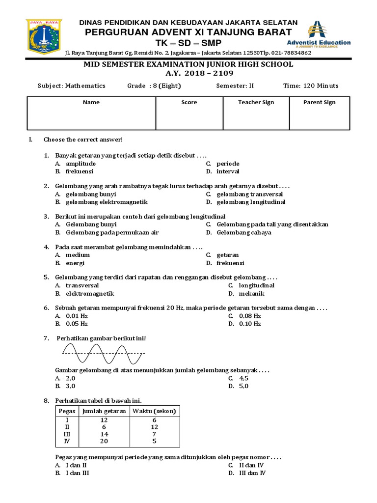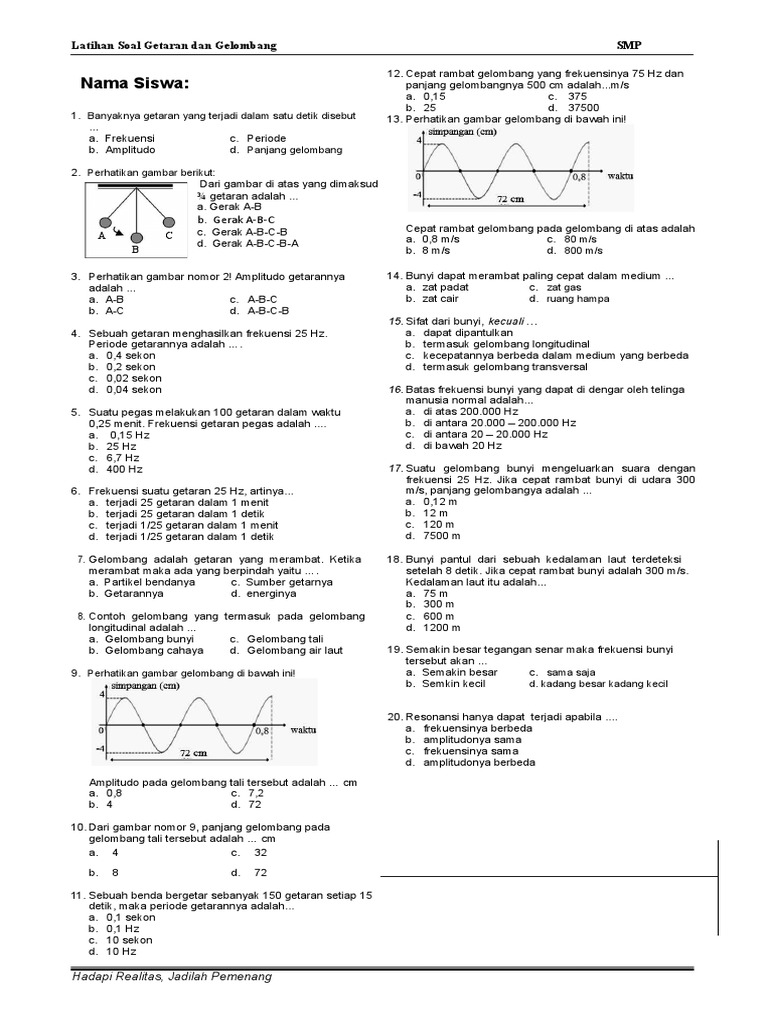 255147320 Latihan Soal Getaran Dan Gelombang Kelas 8