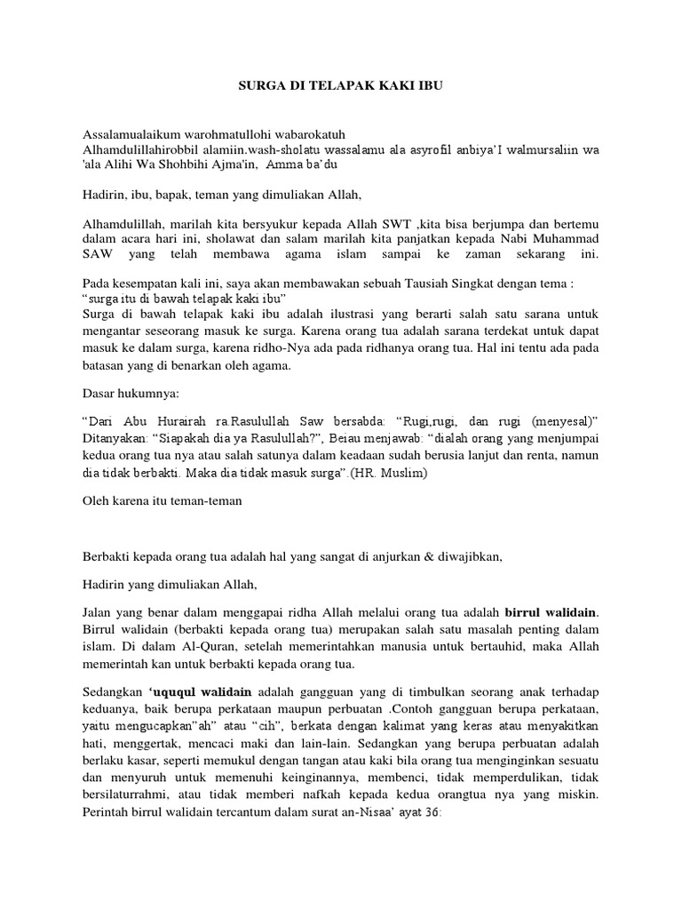 Naskah Pidato Syurga Di Telapak Kaki Ibu