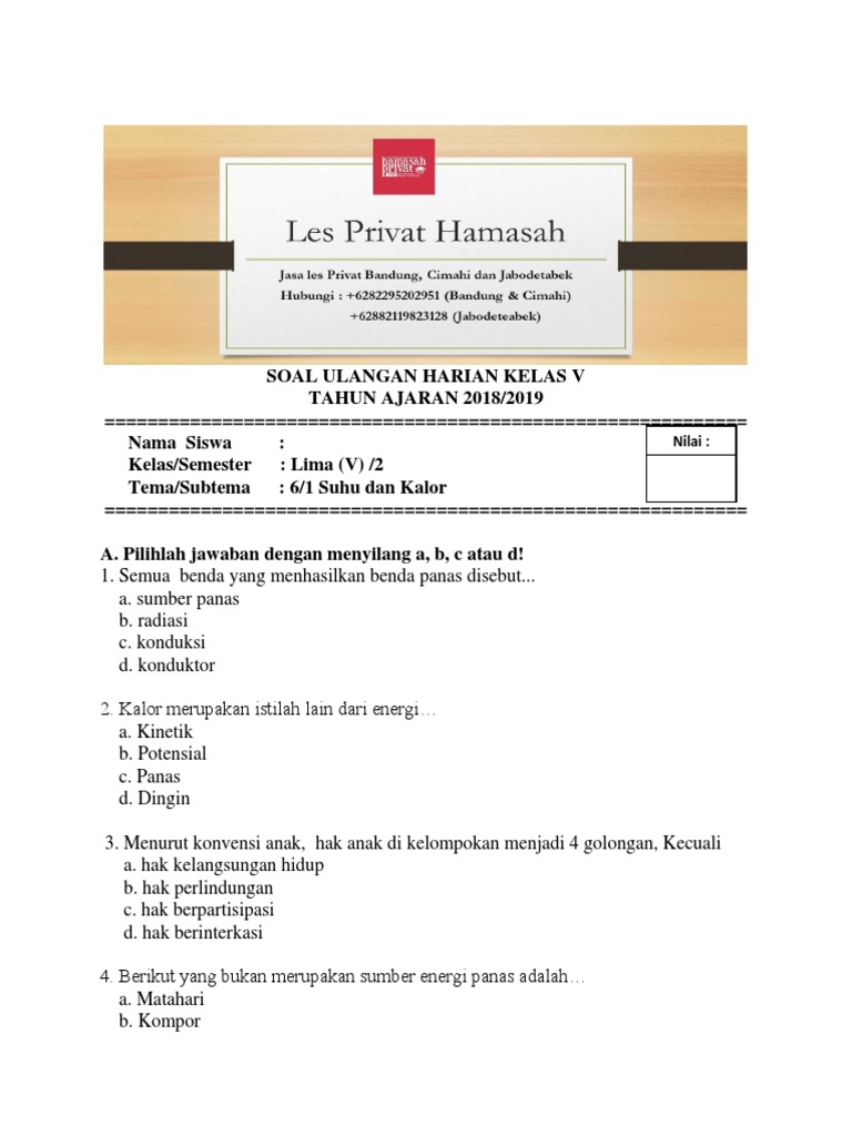 Soal Ulangan Harian Kelas 5 Tema 6 Subtema 1