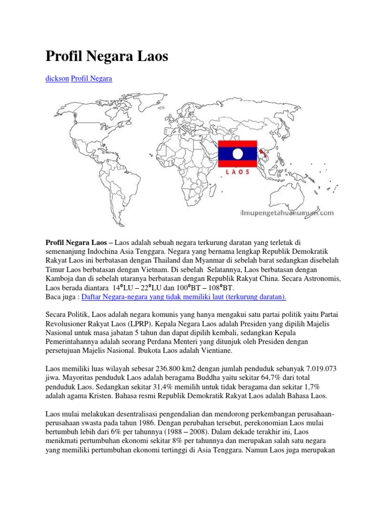 Profil Negara Laos - Ilmu Pengetahuan Umum