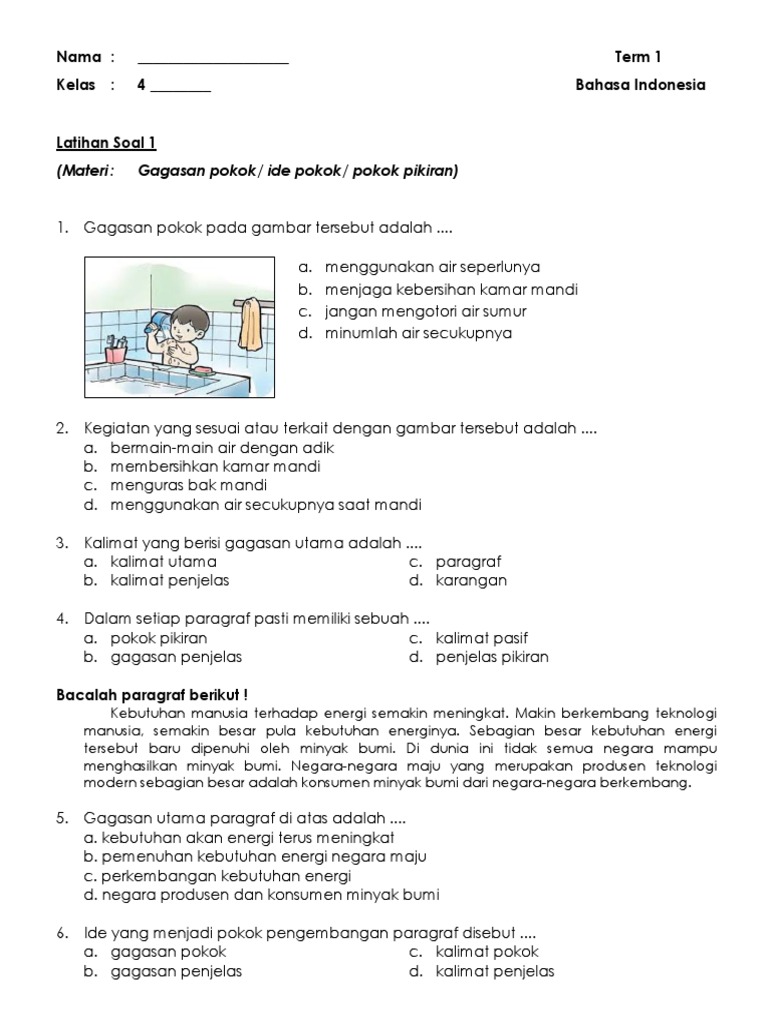 Contoh Soal Ide Pokok Paragraf | Kumpulan Soal pelajaran 5