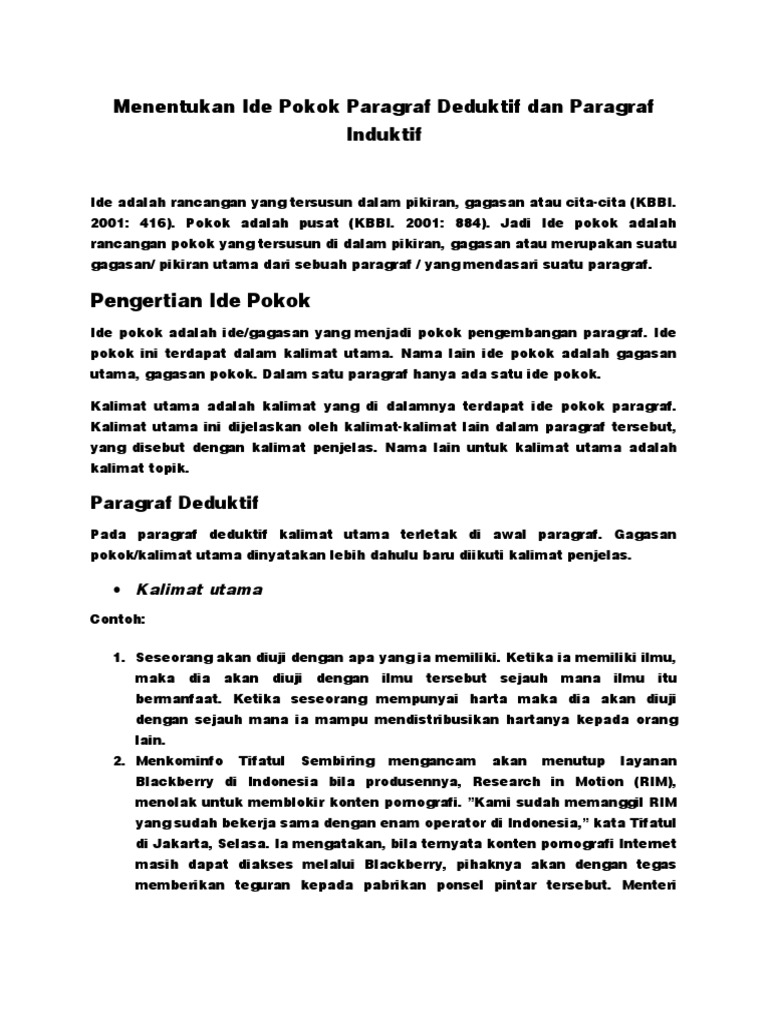 Pengertian Ide Pokok: Menentukan Ide Pokok Paragraf Deduktif dan …