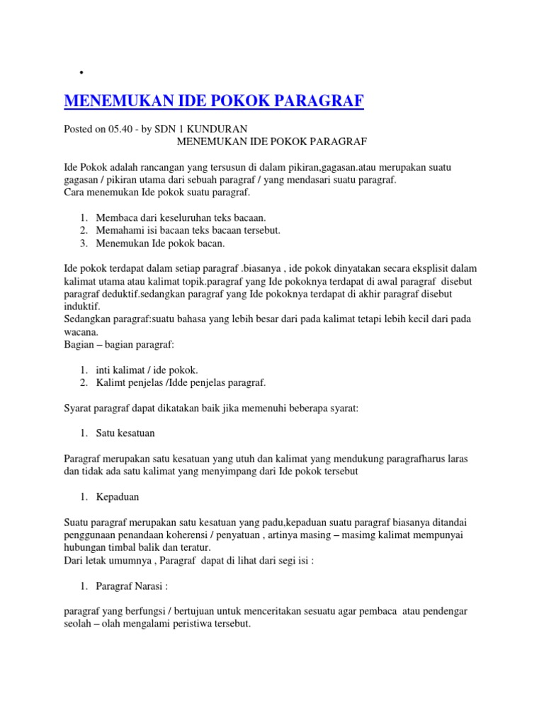 Pengertian Ide Pokok dan Unsur Paragraf Lengkap …