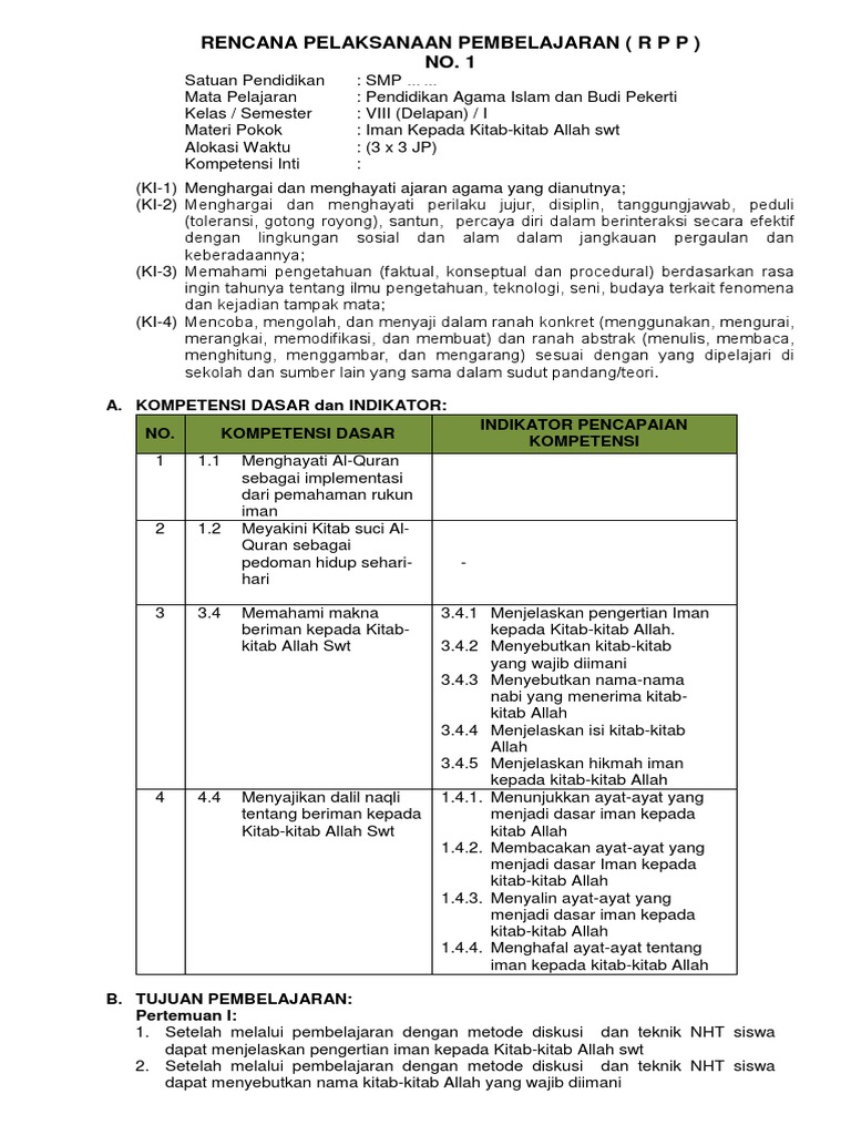 RPP Iman Kepada Kitab Allah