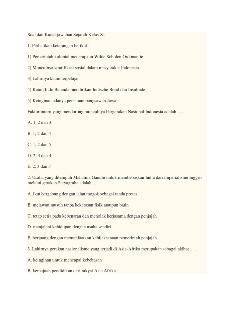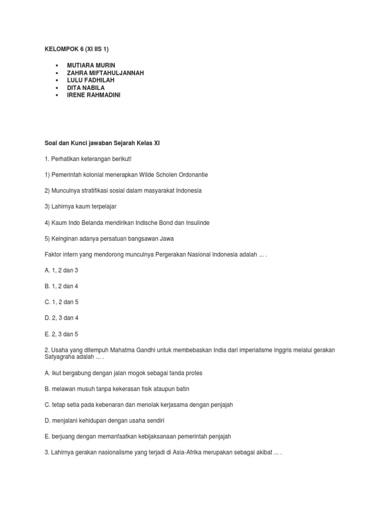 Soal dan Kunci jawaban Sejarah Kelas XI.docx