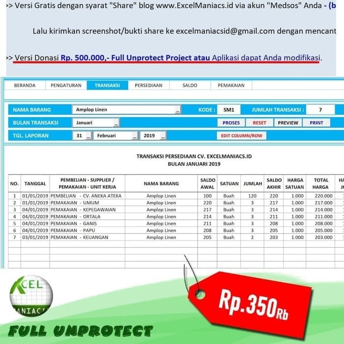 Jual Aplikasi Excel Laporan Stock Persediaan Versi 4 UNPROTECT …
