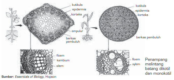 Struktur Batang Dikotil Dan Monokotil- Jaringan, Fungsinya-