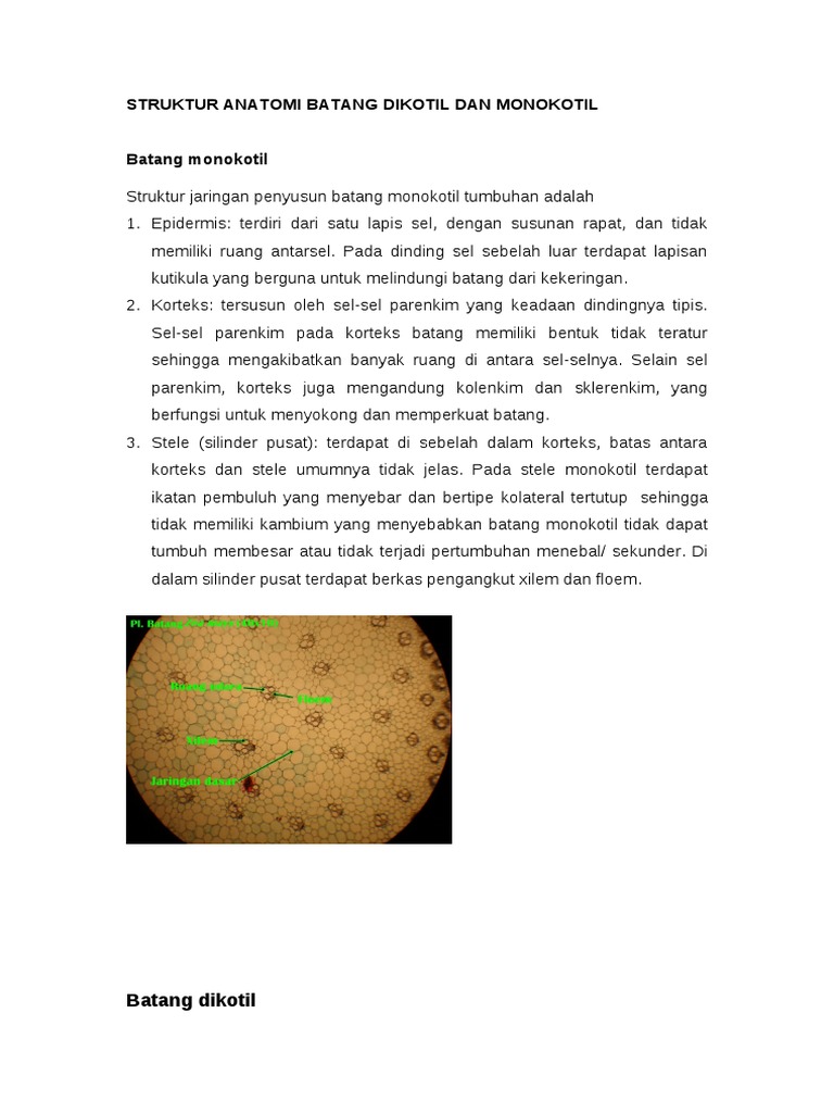 Struktur Anatomi Batang Dikotil Dan Monokotil