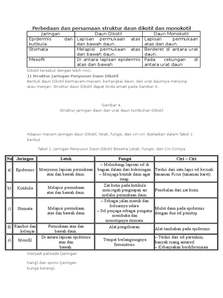 Perbedaan Dan Persamaan Struktur Daun Dikotil Dan Monokotil