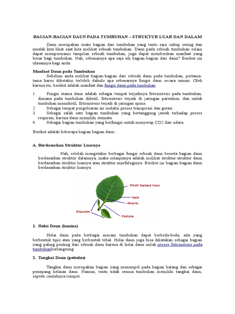 Bagian-bagian Daun pada Tumbuhan - Struktur Luar dan Dalam - DosenBiologi.com