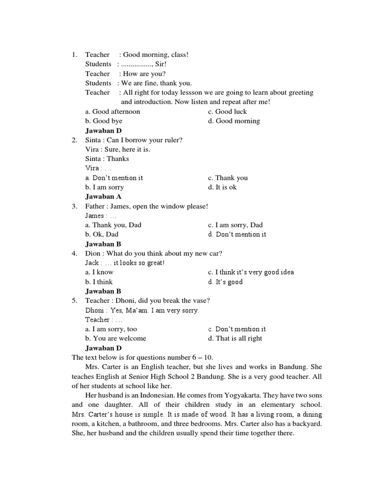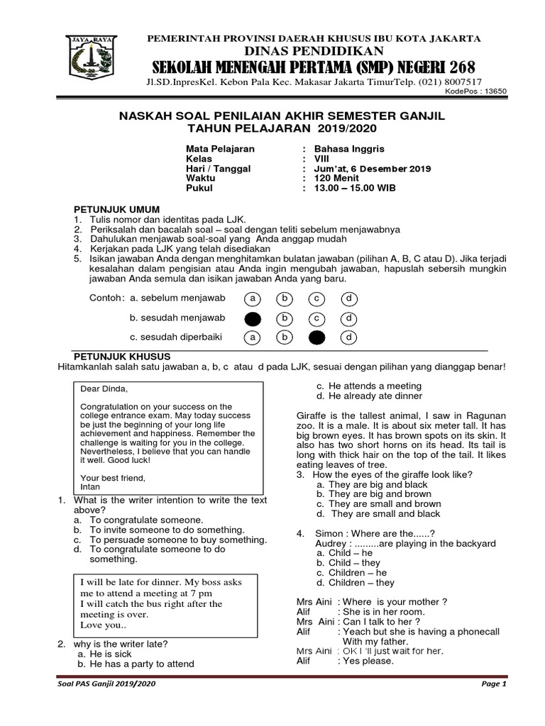 Soal & Jawaban PAS Bahasa Inggris Kelas VII SMP Semester Gasal …