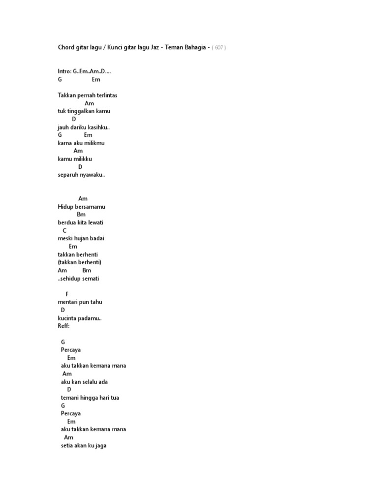 Chord Gitar Online on Twitter: “Kunci Gitar JAZ - TEMAN BAHAGIA …