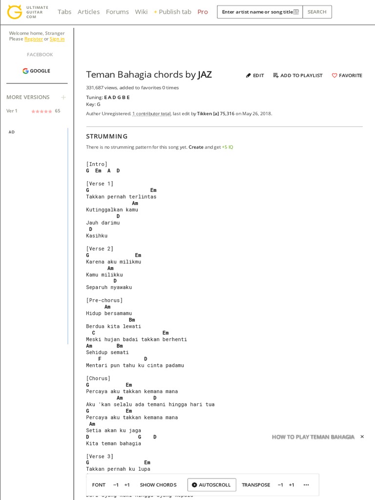 TEMAN BAHAGIA Guitar Chords by Jaz | Guitar Chords Explorer