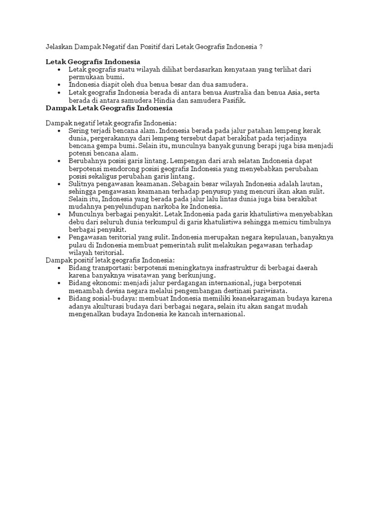 sebutkan dampak negatif pengaruh letak geografis indonesia dalam …