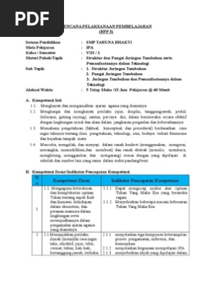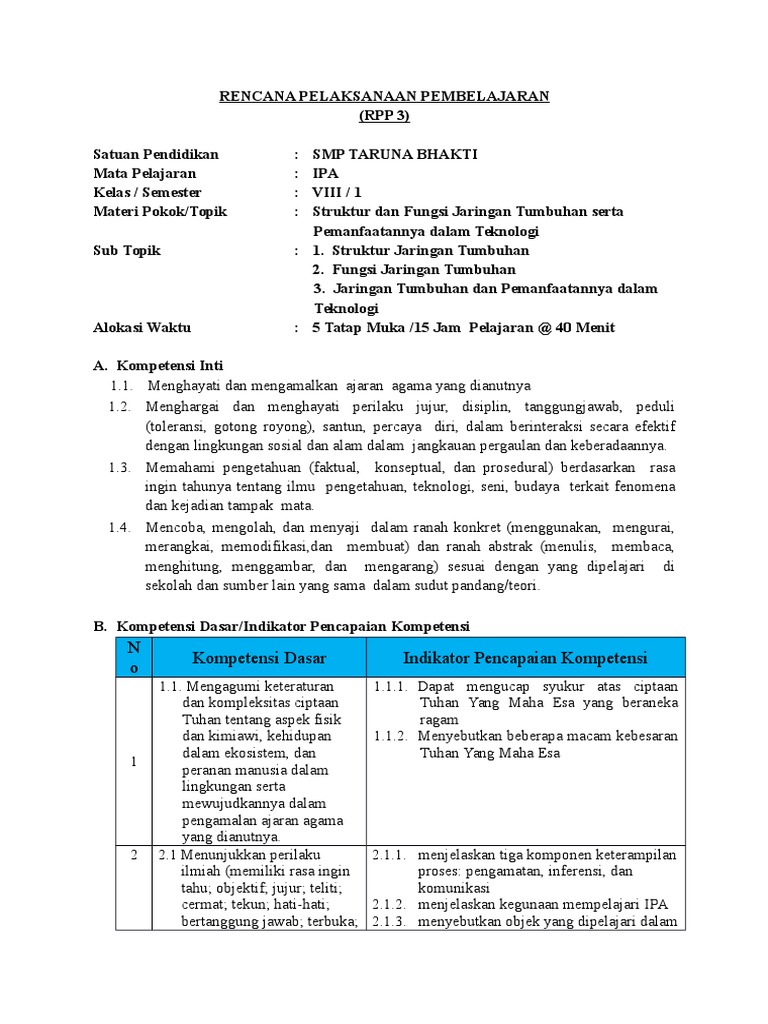 RPP IPA K-13 KELAS 8 SEMESTER-1 Bab3 Taringan Tumbuhan