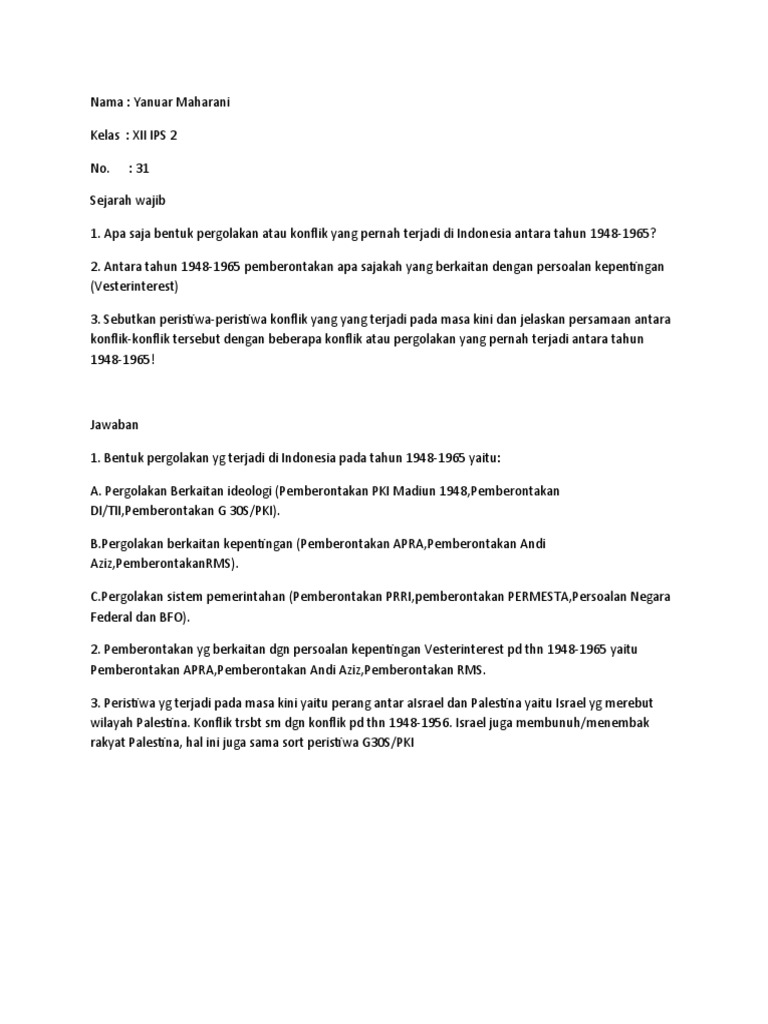 11 Soal sejarah indonesia kelas 12 langsung jawab - Putera Chaniago