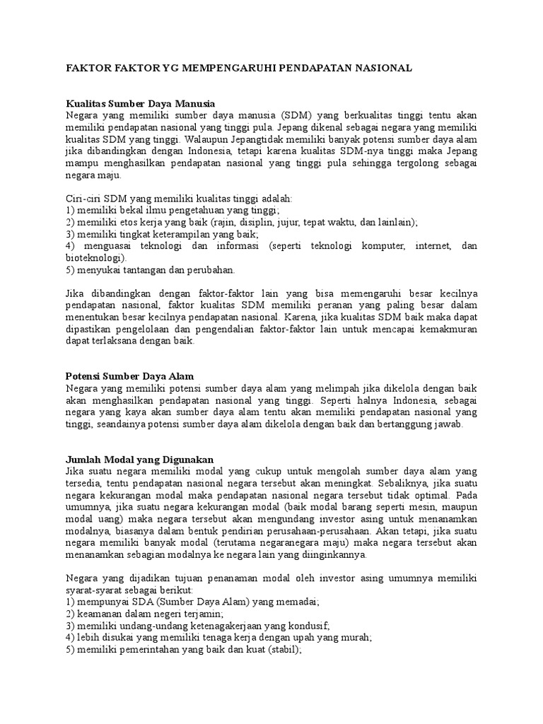 Faktor Faktor Yg Mempengaruhi Pendapatan Nasional