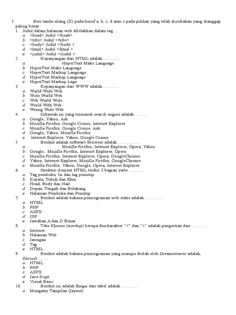 SOAL WEB DISAIN DAN PROGRAMMING KELAS XI (11) DAN XII (12) UNTUK …