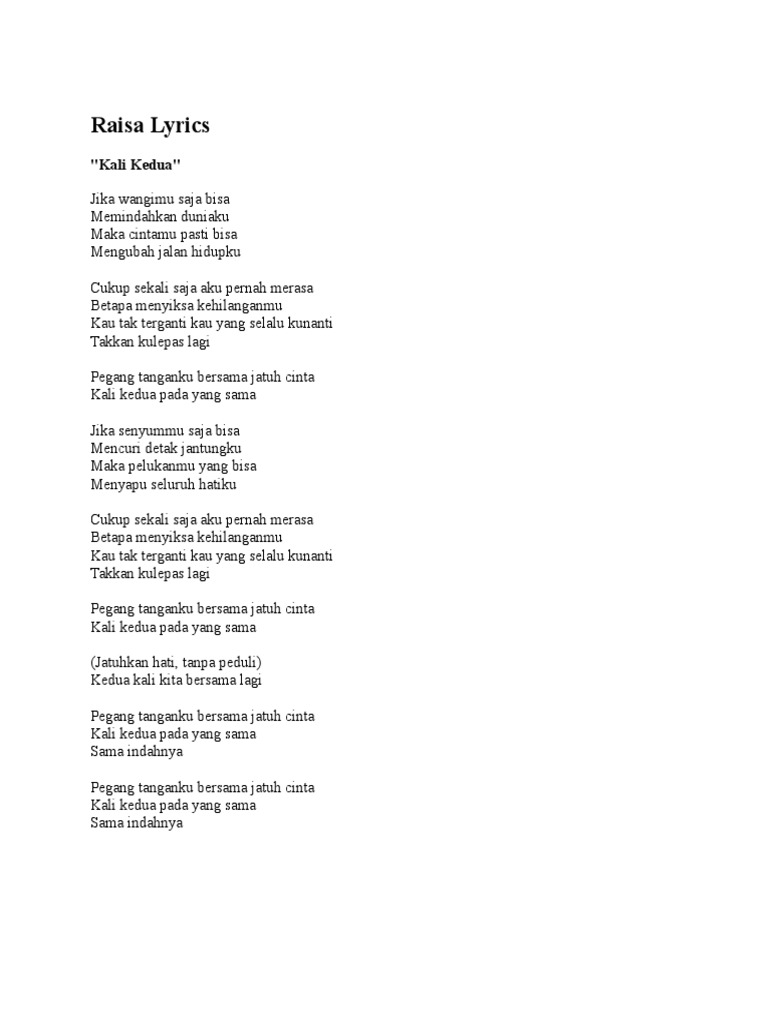 Kali Kedua - Raisa (Unofficial Lyrics) - YouTube