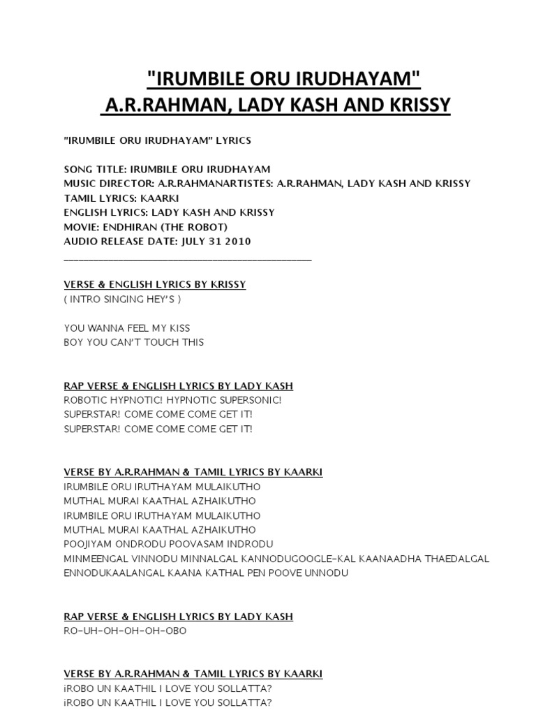 Lyrics) Irumbile Oru Irudhayam | Songs | Popular Music