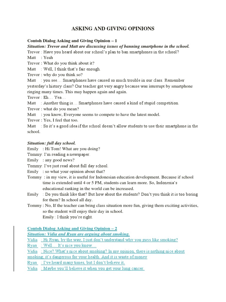 Contoh Dialog Asking Giving And Responding Opinion