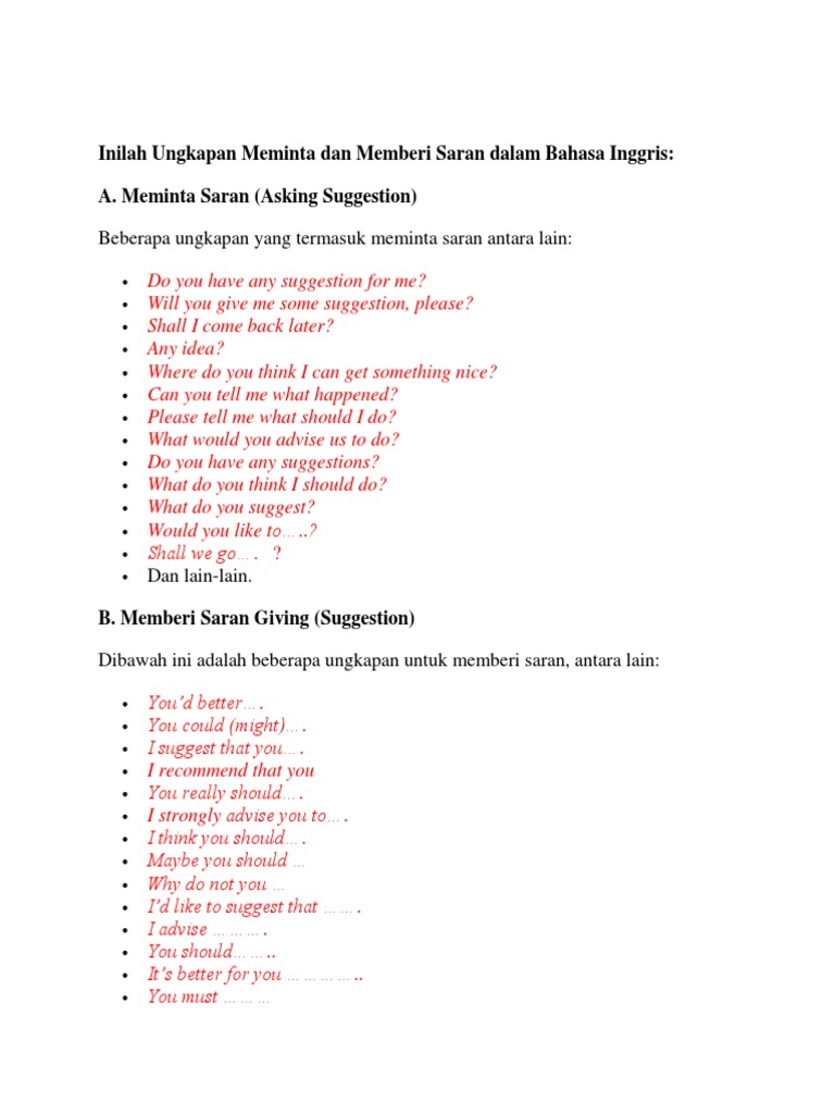 Asking and Giving Suggestion (Advice) Lengkap - KelasBahasaInggris.com