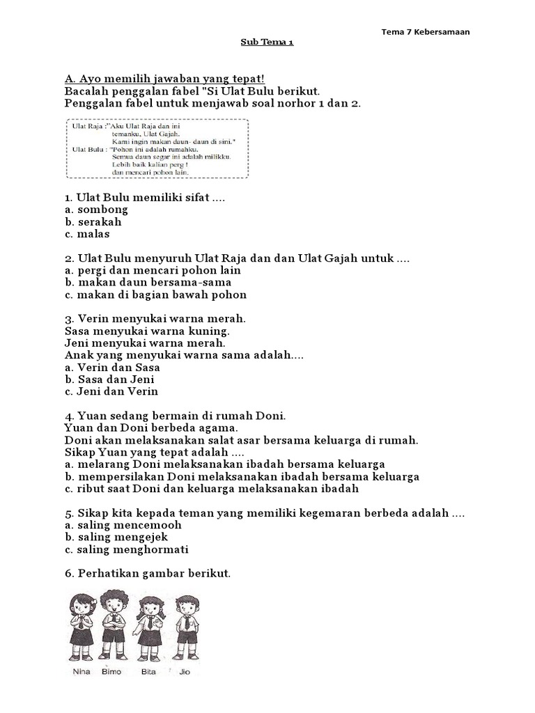 Lengkap - Contoh Soal UH / PH untuk kelas 2 SD/MI Tema 7 Subtema 3 …