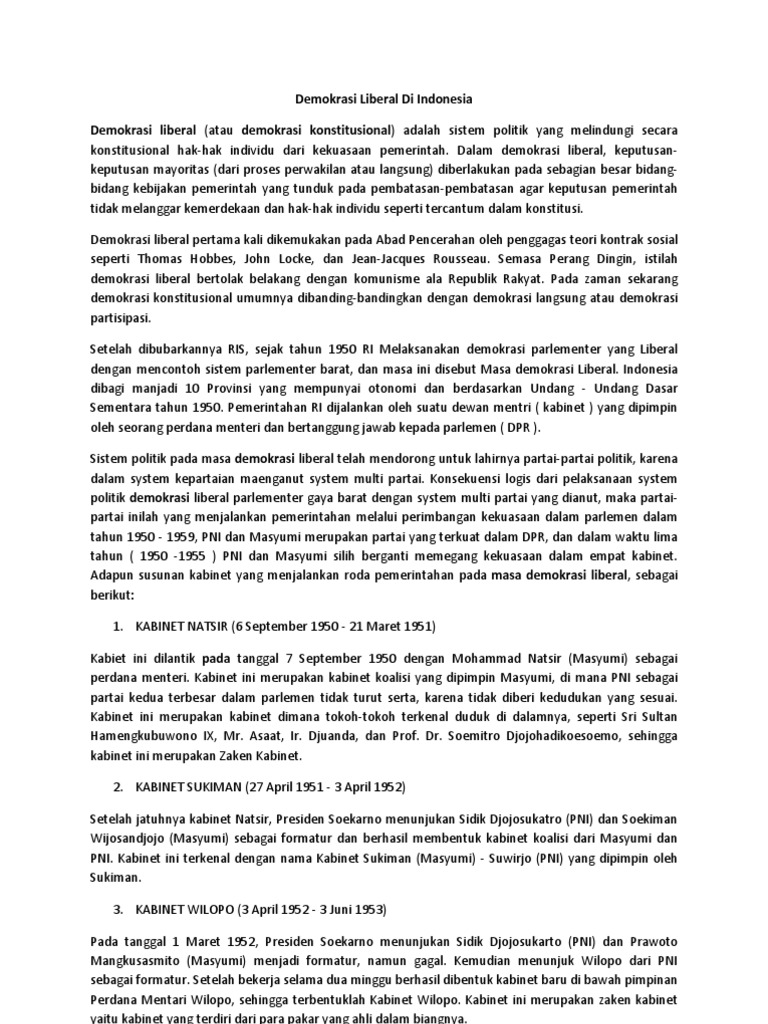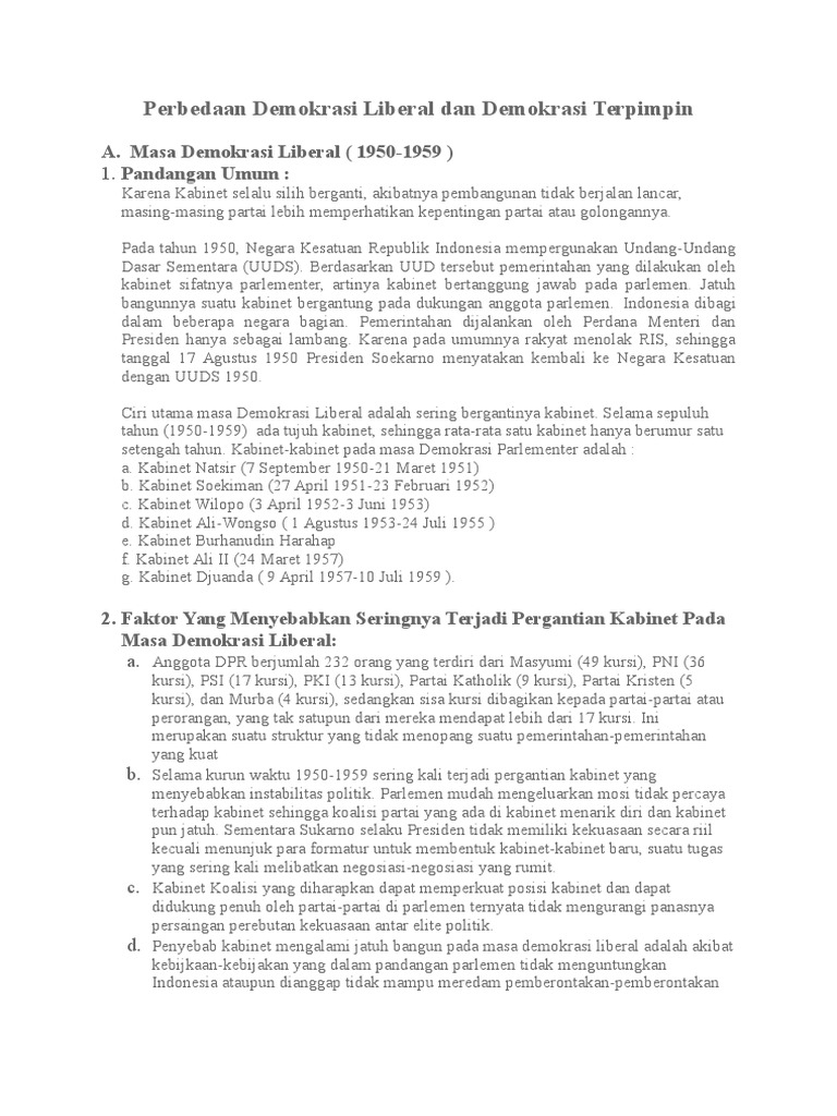 DOC) RANGKUMAN KEHIDUPAN POLITIK DAN EKONOMI PADA MASA DEMOKRASI LIBERAL DAN DEMOKRASI TERPIMPIN | Shofia D. Nasifah - Academia.edu