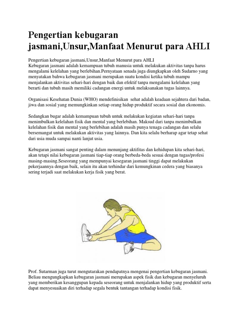 pengertian kebugaran jasmani menurut para ahli | Laeli TM