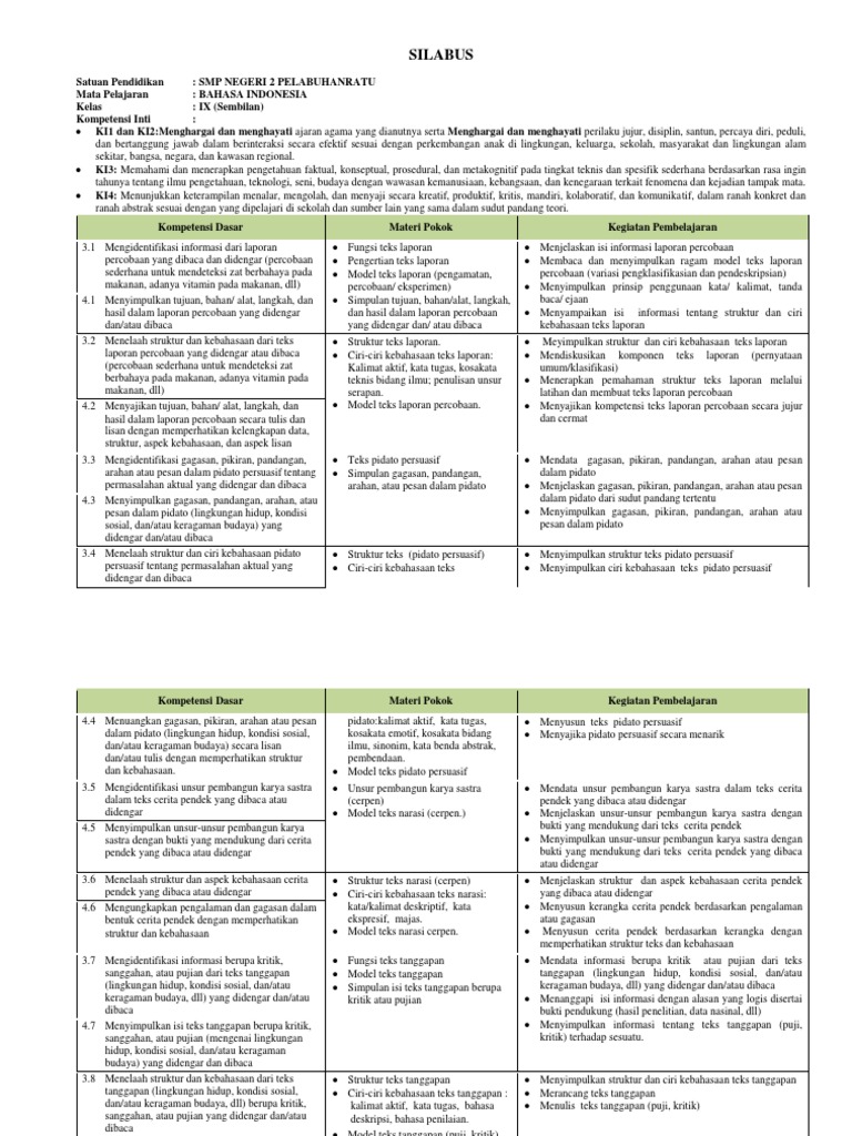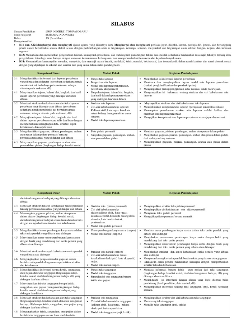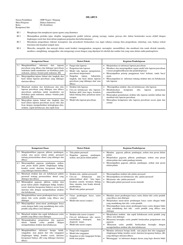 ANALISIS KD, PENENTUAN MATERI ESENSIAL, INDIKATOR, DAN SILABUS BAHASA INDONESIA KELAS IX SEMESTER GANJIL 2020 – 2021