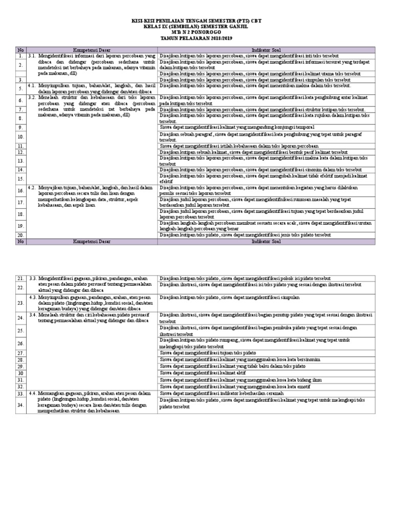 Soal PAS Bahasa Indonesia Kelas 9 Semester 1 2019-2020 - Info Pendidikan Terbaru