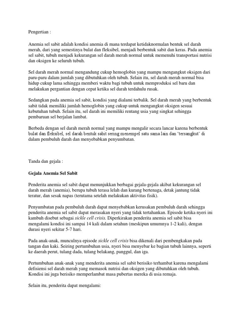 Anemia Sel Sabit - Gejala, penyebab dan mengobati - Alodokter