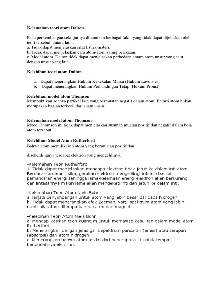 Kelemahan Dan Kelebihan Beberapa Teori Atom