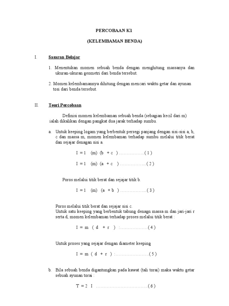 DOC) PERCOBAAN 7 PENENTUAN MOMEN KELEMBAMAN BENDA PUTAR DENGAN …