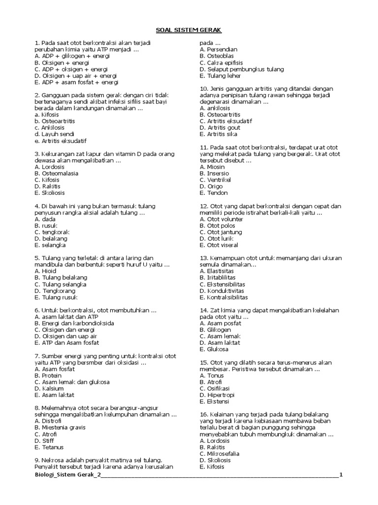 soal dan jawaban sistem gerak