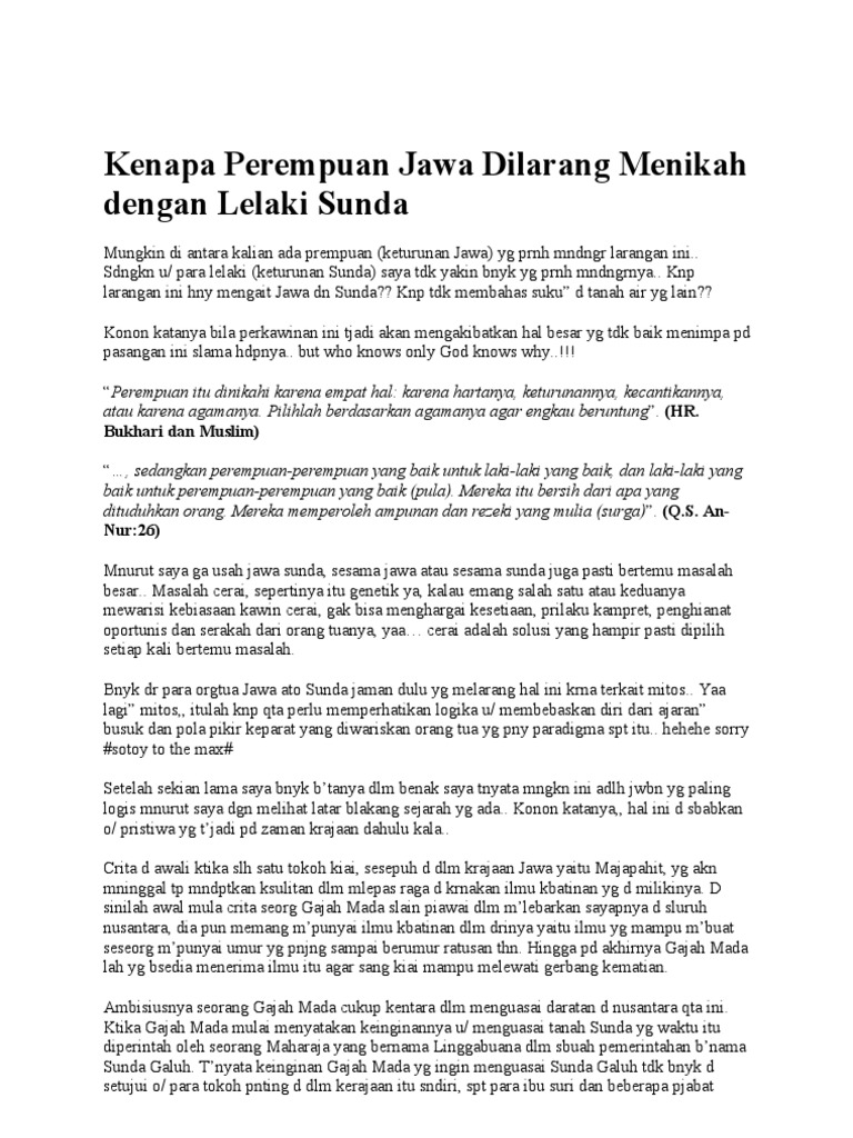 Orang Sunda dilarang Menikah Dengan Orang Jawa. Ternyata …