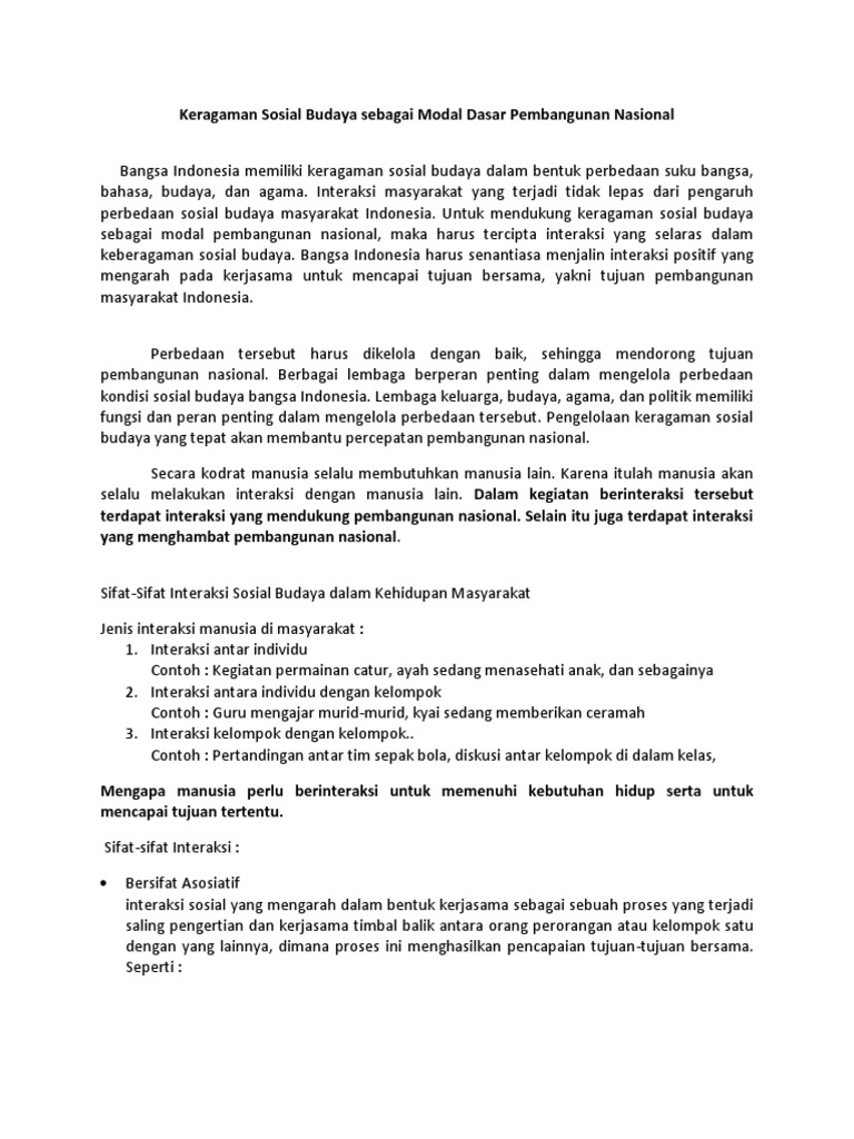 Keragaman Sosial Budaya Menjadi Modal Pembangunan Nasional …