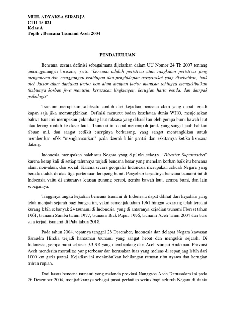 Muh. Adyaksa Siradja C111 15 021 Kelas A Topik: Bencana …