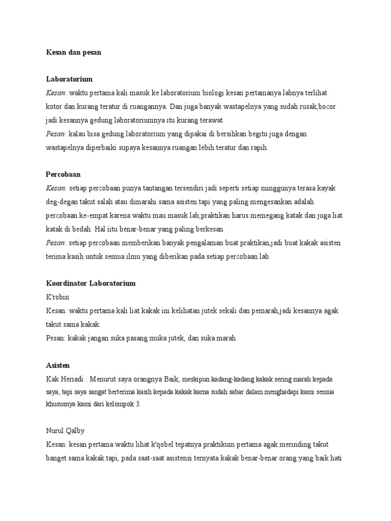 kesan dan pesan Laboratorium.doc