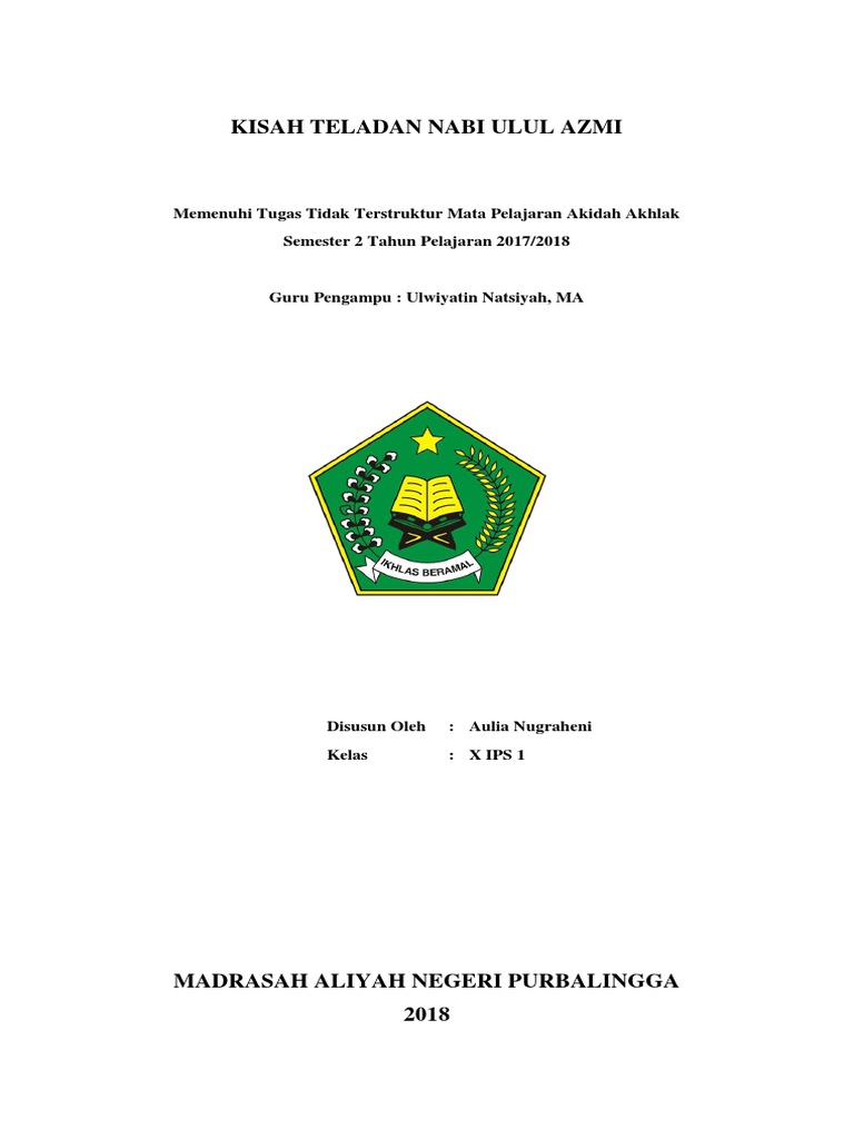 MAKALAH AQIDAH AKHLAK KELAS 10 : KISAH TELADAN RASUL ULUL AZMI …