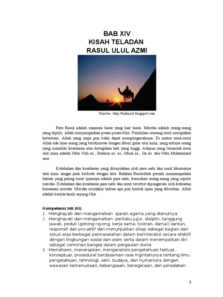 Bab Xiv Kisah Teladan Rasul Ulul Azmi: Kompetensi Inti (KI)