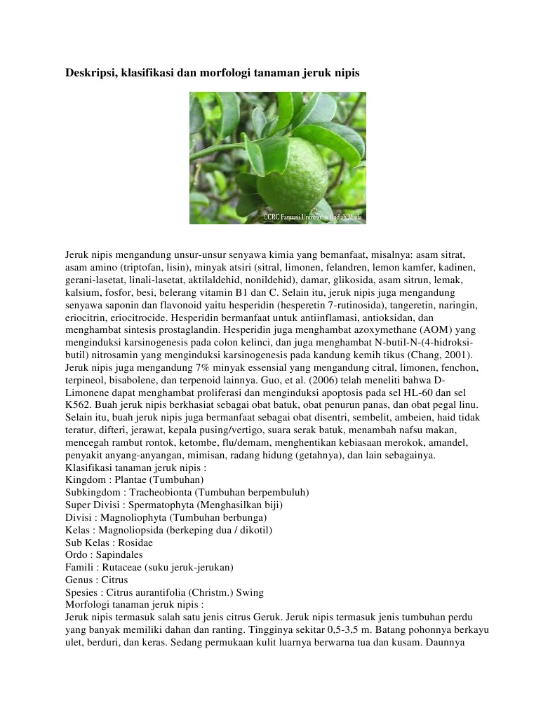 Klasifikasi Tumbuhan Jeruk Nipis, Morfologi juga Manfaat | BIOLOGI …