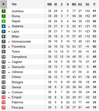 Klasemen Akhir Seri A Liga Italia 2016/2017 - Bolalob.com