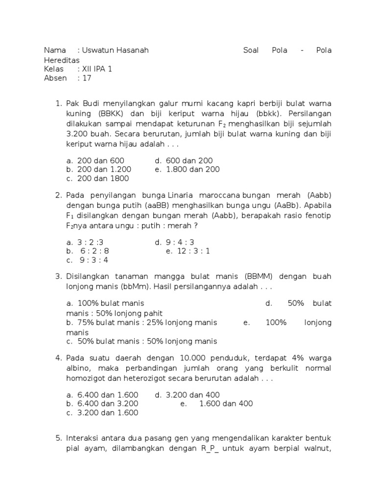 soal mencongak biologi