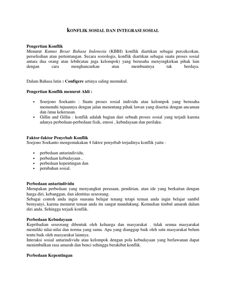 Konflik dan Integrasi Dalam Kehidupan Sosial.docx - Konflik dan …