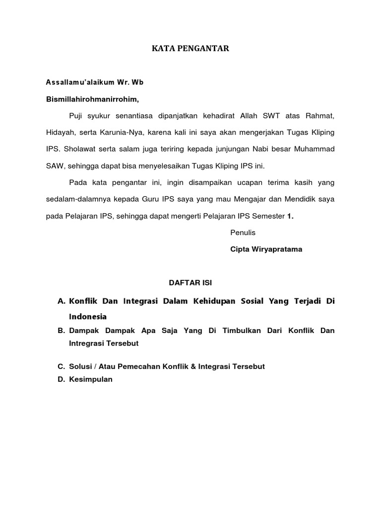 Buatlah Kliping yang merupakan konflik dan integrasi dalam …
