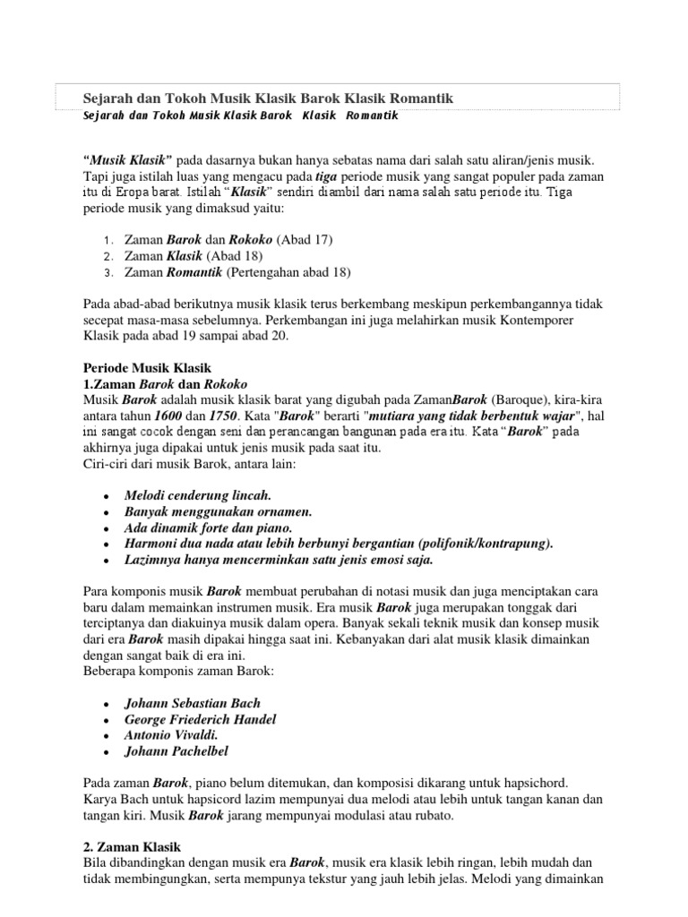 Sejarah Dan Tokoh Musik Klasik Barok Klasik Romantik