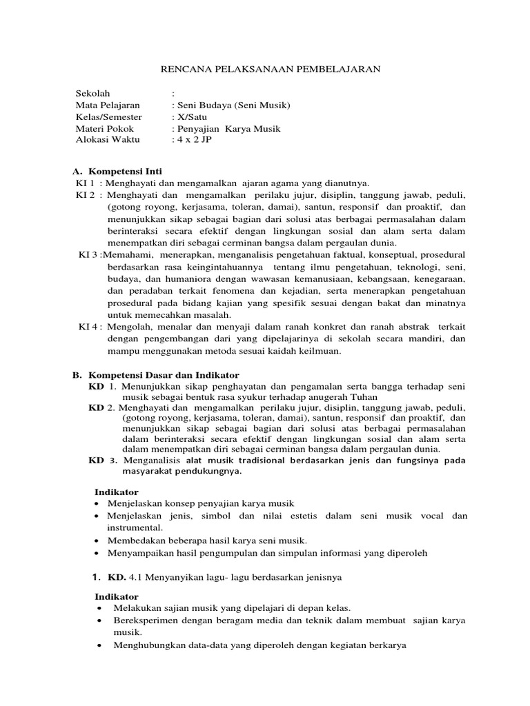 Contoh rpp Seni musik kurtil | Sekar Cahyadi - Academia.edu